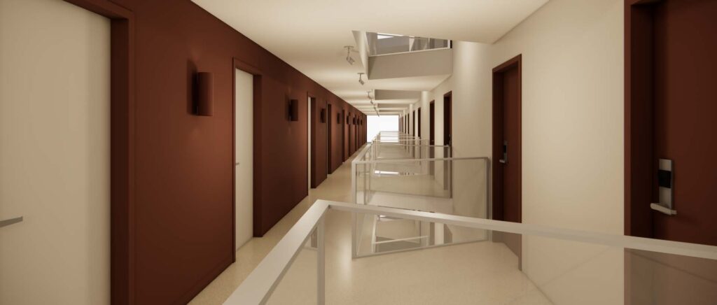 Corridor refresh, including wall and floor finishes, signage, and lift lobby pinboards